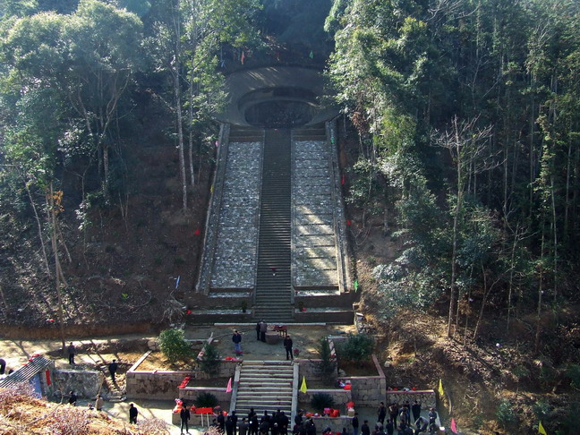 百階塚地處的巖前行政村,隸屬三元區(qū)巖前鎮(zhèn),為鎮(zhèn)政府所在地。位于福建省三明市西約35公里,直線距離18公里。百階塚位于巖前村西約二公里的群山深處,地理坐標(biāo)為:北緯26°15′25.5″,東經(jīng)117°25′30.0″,海拔高度為226米。 百階塚規(guī)模巨大,氣勢宏偉,是目前我省所發(fā)現(xiàn)的最大的宋、元時(shí)期墓葬。建筑面積近20000平方米。墓葬地下部分因未發(fā)掘,結(jié)構(gòu)不詳。地上部分主要由墳面、背圍攏、天池坪、百級(jí)坡狀階道、享堂坪、大埕、神道、木牌樓、半月池等幾部份組成。既有宋代墓葬地上建筑追求華麗、繁縟的特點(diǎn),又有元代墓葬取勢高峻、氣勢宏大的風(fēng)格,是兩者建檔完美組合。百階塚建造年代、墓主人記載清晰,為以后界定此類墓葬的年代提供了佐證實(shí)例。 |