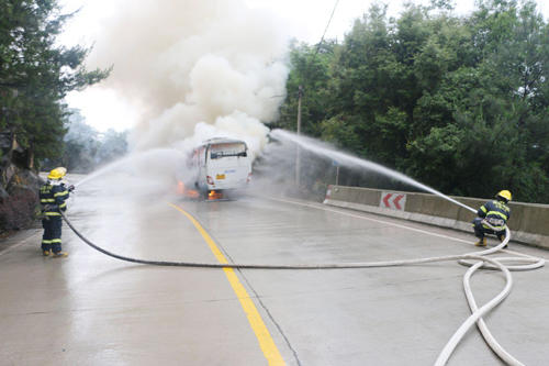 6月18日17時18分,三元區東牙溪水庫路段有一輛中巴客車起火,無人員被困,火勢較大。接警后,三元消防大隊立即組織力量趕往現場撲救火災。 17時28分,消防官兵到達現場,此時中巴客車已經被巨大的火焰吞沒,燃燒猛烈。經詢問得知,車體隨時有爆炸的可能,情況緊急。現場指揮員迅速下達作戰命令:滅火小組利用水槍進行滅火;警戒組配合交警負責現場警戒,疏散圍觀群眾,疏導交通。經過消防官兵約二十分鐘的撲救,明火被撲滅。為防止復燃,消防官兵繼續用水槍對車體進行冷卻降溫。確保無險情后,消防官兵撤離現場。 消防部門提醒,由于近日持續高溫,車輛發動機艙內溫度極高,極易引發車輛自燃,請駕駛員朋友做好車輛的日常保養維護工作,車上必須配備滅火器,如車輛發生自燃能夠及時自救,同時撥打119報警。(游曉聰)