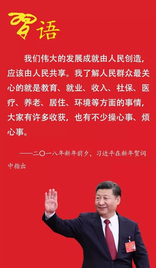 ? 十三屆全國人大一次會議開幕式上,政府工作報告干貨滿滿,透露出許多利好消息,報告一出,群眾歡欣鼓舞。與此同時,這些獲益人群、這些惠及民生的重大工程也讓習(xí)近平總書記時刻牽掛。讓我們一起來看看總書記怎么說。 最牽掛困難群眾 我最牽掛的還是困難群眾 新年之際,我最牽掛的還是困難群眾,他們吃得怎么樣、住得怎么樣,能不能過好新年、過好春節(jié)。我也了解,部分群眾在就業(yè)、子女教育、就醫(yī)、住房等方面還面臨一些困難,不斷解決好這些問題是黨和政府義不容辭的責(zé)任。 ——二〇一七年新年前夕,習(xí)近平在新年賀詞中指出 脫貧攻堅要統(tǒng)籌解決好具體問題 脫貧攻堅工作進入目前階段,要重點研究解決深度貧困問題。實施整村搬遷,要規(guī)劃先行,尊重群眾意愿,統(tǒng)籌解決好人往哪里搬、錢從哪里籌、地在哪里劃、房屋如何建、收入如何增、生態(tài)如何護、新村如何管等具體問題。 ——2017年6月21日,習(xí)近平在山西考察工作時強調(diào) 全面小康路上不能忘記每一個民族、每一個家庭 我們搞社會主義,就是要讓各族人民都過上幸福美好的生活。全面建成小康社會最艱巨最繁重的任務(wù)在貧困地區(qū),特別是在深度貧困地區(qū),無論這塊硬骨頭有多硬都必須啃下,無論這場攻堅戰(zhàn)有多難打都必須打贏,全面小康路上不能忘記每一個民族、每一個家庭。 ——2018年2月11日,習(xí)近平在四川考察調(diào)研時指出 教育就業(yè) 扶貧必扶智 扶貧必扶智。讓貧困地區(qū)的孩子們接受良好教育,是扶貧開發(fā)的重要任務(wù),也是阻斷貧困代際傳遞的重要途徑。 ——2015年9月9日,習(xí)近平在給“國培計劃(2014)”北京師范大學(xué)貴州研修班參訓(xùn)教師的回信中指出 教育公平是社會公平的重要基礎(chǔ) 教育公平是社會公平的重要基礎(chǔ),要不斷促進教育發(fā)展成果更多更公平惠及全體人民,以教育公平促進社會公平正義。 ——2016年9月9日,習(xí)近平在北京市八一學(xué)校看望慰問師生時指出 就業(yè)是最大的民生 就業(yè)是最大的民生。要堅持就業(yè)優(yōu)先戰(zhàn)略和積極就業(yè)政策,實現(xiàn)更高質(zhì)量和更充分就業(yè)。大規(guī)模開展職業(yè)技能培訓(xùn),注重解決結(jié)構(gòu)性就業(yè)矛盾,鼓勵創(chuàng)業(yè)帶動就業(yè)。提供全方位公共就業(yè)服務(wù),促進高校畢業(yè)生等青年群體、農(nóng)民工多渠道就業(yè)創(chuàng)業(yè)。 ——2017年10月18日,習(xí)近平在中國共產(chǎn)黨第十九次全國代表大會上的報告 社會保障 保障和改善民生沒有終點,只有連續(xù)不斷的新起點 保障和改善民生沒有終點,只有連續(xù)不斷的新起點,要采取針對性更強、覆蓋面更大、作用更直接、效果更明顯的舉措,實實在在幫群眾解難題、為群眾增福祉、讓群眾享公平。要從實際出發(fā),集中力量做好普惠性、基礎(chǔ)性、兜底性民生建設(shè),不斷提高公共服務(wù)共建能力和共享水平,織密扎牢托底的民生保障網(wǎng)、消除隱患,確保人民群眾安居樂業(yè)、社會秩序安定有序。 ——2016年2月,習(xí)近平在江西調(diào)研考察時的講話 解決好大醫(yī)院“戰(zhàn)時狀態(tài)” 人民群眾對醫(yī)療服務(wù)均等化愿望十分迫切。像大城市的一些大醫(yī)院,始終處于“戰(zhàn)時狀態(tài)”,人滿為患,要切實解決好這個問題。 ——2014年12月13日,習(xí)近平在江蘇鎮(zhèn)江進行調(diào)研時指出 提高養(yǎng)老院服務(wù)質(zhì)量 提高養(yǎng)老院服務(wù)質(zhì)量,關(guān)系2億多老年人口特別是4000多萬失能半失能老年人的晚年幸福,也關(guān)系他們子女工作生活,是涉及人民生活質(zhì)量的大事。 ——2016年12月21日,習(xí)近平在中央財經(jīng)領(lǐng)導(dǎo)小組第十四次會議上強調(diào) 房子是用來住的、不是用來炒的 堅持房子是用來住的、不是用來炒的定位,加快建立多主體供給、多渠道保障、租購并舉的住房制度,讓全體人民住有所居。 ——2017年10月18日,習(xí)近平在中國共產(chǎn)黨第十九次全國代表大會上的報告 |