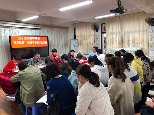 為深入貫徹落實黨的十九大和習近平總書記重要指示精神,按照區綜治辦的相關要求,進一步推進掃黑除惡專項斗爭活動開展,營造全民參與的濃厚氛圍,近日,崇寧社區與三元實幼一起召開“掃黑除惡”專項斗爭宣傳工作會議,進行周密部署,采取有效措施,狠抓工作落實,在幼兒園迅速掀起"掃黑除惡”專項行動宣傳工作高潮,營造強大的宣傳攻勢。