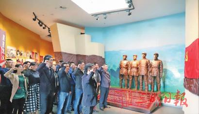 清明節來臨之際,三元區紀委開展了“緬懷先烈不忘初心繼續前進”系列主題活動,發揮紅色文化教育引領作用,增強“四個意識”,堅定“四個自信”,讓黨員干部永葆初心、忠誠履職。圖為3月29日,該區紀檢干部到市博物館“紅色三明”展廳參觀,并重溫入黨誓詞。(楊開長 羅興根 )