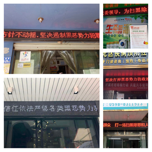 復(fù)康社區(qū)工作人員積極與沿街商鋪店面協(xié)調(diào)LED電子顯示屏,滾動(dòng)播放掃黑除惡宣傳內(nèi)容,做到全轄區(qū)覆蓋。同時(shí),組織志愿者深入街頭巷尾,面對(duì)面地向轄區(qū)居民講解涉黑涉惡的表現(xiàn)形式,宣傳掃黑除惡重要意義,積極動(dòng)員群眾舉報(bào)揭發(fā)各類涉黑涉惡違法犯罪線索,提高轄區(qū)居民的反黑反惡監(jiān)督意識(shí)。