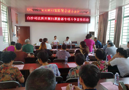 二是集中教育,提升意識。白沙司法所組織社區(qū)服刑人員進行集中教育,學習上級掃黑除惡相關(guān)文件精神,要求他們不得從事黑惡社會活動,進一步要求他們要遵紀守法,并幫忙做好宣傳。