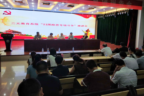 為深入貫徹落實(shí)中央、省、市“掃黑除惡”專項(xiàng)斗爭工作有關(guān)會(huì)議精神,8月27日下午,三元區(qū)教育系統(tǒng)“掃黑除惡”專項(xiàng)斗爭推進(jìn)會(huì)在三元第二實(shí)驗(yàn)小學(xué)召開。區(qū)教育局班子成員、全區(qū)各校(園)長、局機(jī)關(guān)部分股室負(fù)責(zé)人參加會(huì)議。