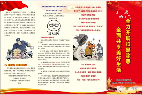 氛圍再濃厚。在重點區域、居民小區、公開欄增設宣傳廣告標語,公布舉報電話及郵箱,營造濃厚的宣傳氛圍。對街居干部掃黑除惡應知應會知識組織學習測試,發動干部群眾主動參與。