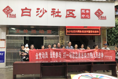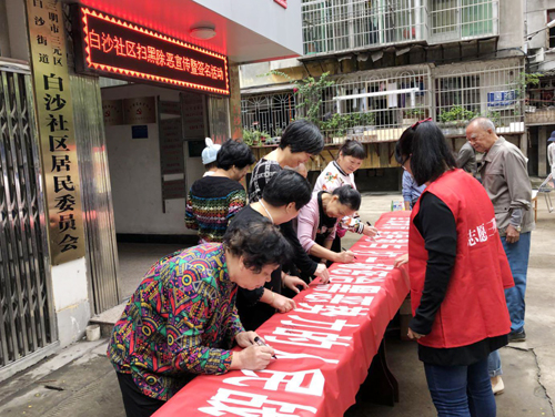 宣傳活動現場社區黨員志愿者向群眾發放《白沙街道掃黑除惡專項斗爭宣傳單》、《致白沙居民積極參與掃黑除惡專項斗爭的一封信》500余份,并認真講解掃黑除惡的重大意義,引導大家積極參加“掃黑除惡”簽名活動。