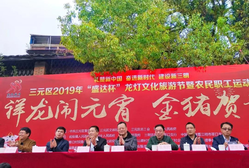 “祥龍鬧元宵,金豬賀新春”,2月15日,三元區(qū)“盛達杯”龍燈文化旅游節(jié)暨農民職工運動會在莘口鎮(zhèn)舉行。區(qū)委副書記、區(qū)長廖衛(wèi)國,區(qū)政協(xié)主席李世福,區(qū)委常委、宣傳部長詹承釬,副區(qū)長黃麗鴻、朱建平、張庚豫等領導和農民朋友們歡聚一堂,共慶元宵佳節(jié)。