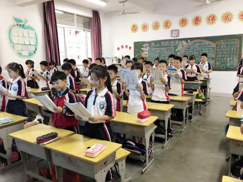 在學校讀書節活動期間,三元區第二實驗小學四年級各班開展經典誦讀比賽活動。