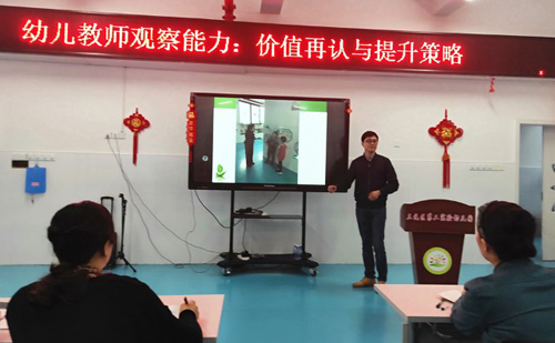 為提高教師的觀察分析能力,推進市級課題《基于生活體驗的幼兒園混齡串聯游戲實踐研究》研究,5月6日傍晚,三元二實幼邀請三明醫學科技職業學院的焦揚老師來園做《幼兒教師觀察能力:價值再認與提升策略》的專題講座。區第二實驗幼兒園全體教師參加學習。