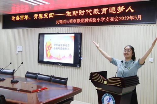 為弘揚愛國、進步、民主、科學的“五四”精神,動員和引導全校青年教師深入學習習近平總書記新時代中國特色社會主義思想,踐行社會主義核心價值觀,全面展示學校教師朝氣蓬勃、健康向上的精神風貌,共青團三明市陳景潤實驗小學支部舉行“滄桑百年,青春五四——做新時代教育追夢人”紀念五四運動100周年主題活動。活動中,學校黨支部書記魏恩忠首先為青年教師上了一節生動深刻的思想微課,他用自己的親身經歷述說著38年來三元教育的變化,希望大家牢記使命,用習近平總書記對新時代中國青年提出六點要求來嚴格要求自己,認真履職,真誠待人,確立好自己的職業目標,踏實向上,為景潤實小教育的明天獻出自己的力量。