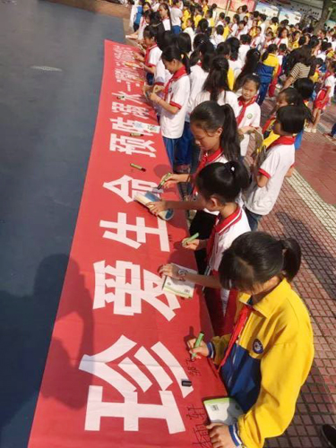最后,分管副校長進行總結(jié)講話,讓師生謹記“防溺水六不準”,努力杜絕悲劇的發(fā)生。并帶領(lǐng)下全體學(xué)生莊嚴宣誓“珍愛生命,預(yù)防溺水”,響亮的聲音為全校師生敲響警鐘。并組織全體師生在宣傳橫幅上簽字。 通過此次安全教育活動,讓師生進一步認識私自下河游泳的危害,掌握防溺水的注意事項。 |