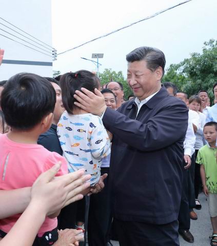 2019年5月20日至22日,習近平在江西考察。這是習近平在紅軍烈士后代、退伍軍人孫觀發家,同孫觀發一家和當地鎮、村干部拉家常,詳細了解老區人民生產發展和生活改善等情況。 江西,是一片充滿紅色記憶的紅土地。中央紅軍長征從這里集結出發,廣大人民群眾與黨同心,用鮮血打拼出一番新的天地…… 江西,是一片洋溢紅色熱情的紅土地。這里蔬菜產業興旺,新農村快速發展,村民過上了紅火的日子…… 江西,是一片釋放紅色活力的紅土地。這里有新技術、新產業,結構在調整、產業在升級、動能在轉換,人們以高昂的干勁迎接更“紅”的明天。 在這片紅土地上調研考察,習近平總書記實地走訪,察看人民群眾生活的變化。 新的奮斗,要不忘初心;新的生活,要裝著民心;新的發展,要抓緊核心。這一次江西之行,亦是一次交“心”之行。 2019年5月20日,習近平在贛州市于都縣中央紅軍長征出發紀念館會見于都縣的紅軍后代、革命烈士家屬代表。 新的奮斗,要不忘初心 5月20日下午,習近平轉乘火車來到江西省于都縣。于都縣是一片紅土地,因為這里是中央紅軍二萬五千里長征的集結出發地,是贛南第一塊紅色根據地、第一個紅色政權誕生地。 “我們不能忘記黨的初心和使命,不能忘記革命理想和革命宗旨,要繼續高舉革命的旗幟,弘揚偉大的長征精神,朝著中華民族偉大復興的目標奮勇前進?!?/span> 今年正逢新中國成立70周年,站在中央紅軍長征出發的紅土地上,習近平的講話倍加振奮人心。 1934年10月,中央機關、中央軍委和中央紅軍主力8.6萬人集結于都,進行戰略轉移。為了隱蔽意圖,避免敵機轟炸,紅軍戰士連續多天架設臨時浮橋,晚上渡河,早上再拆掉浮橋,不留痕跡。當時30萬于都人民不僅與紅軍一心,共同保守秘密,還鋸下家中的房梁、卸下門上的門板,傾盡木材,讓紅軍用去搭浮橋。 習近平在中央紅軍長征出發紀念館見到9位紅軍后代、革命烈士家屬代表,與他們握手,詢問他們的年齡,動情地說:“飲水思源,我來這里也想讓全國人民都知道,中國共產黨要不忘初心,全中國人民要不忘初心,不忘我們的革命宗旨、革命理想,不忘我們的革命前輩、革命先烈,不要忘了我們的父老鄉親們?!?/span> 聽著習近平的關懷與問候,85歲的李燦美老人不禁擦拭了一下眼角。他的父親叫李晉錄,1933年參加紅軍,1934年在福建作戰時犧牲了。 不忘初心,方能堅定前進信心。 今天,中國人民用鮮血和汗水建立的新中國已經走過70年征程,開創了中國特色社會主義事業。當年,中國共產黨人、紅軍戰士用堅定的信念寫就了波瀾壯闊的歷史。如今,我們更應用堅定的信心繼續前行。 習近平在離開中央紅軍長征出發地紀念園時,勉勵大家:“現在是新的長征,我們要重新再出發!” 2019年5月20日,習近平深入贛南老區考察調研。這是習近平來到贛州市于都縣梓山鎮潭頭村親切看望老區群眾。 新的生活,要裝著民心 革命戰爭年代,于都父老鄉親們傾力相助中央紅軍,如今國家發展了,老區人民生活怎么樣?習近平十分關切。 鄉村振興,產業先行。5月20日下午,習近平來到于都縣梓山富硒蔬菜產業園,他一邊聽著園區人員介紹當地的蔬菜產業發展情況,一邊拿起桌上的蔬菜細細察看。 “中國共產黨的初心就是為人民謀幸福、為民族謀復興,黨中央想的就是千方百計讓老百姓都能過上好日子。芝麻開花節節高,今后的日子會更美好?!?/span> 其間,習近平與勞作的鄉親們親切交談。鄉親們告訴他,在這里工作,離家近、也能賺得到錢,學到了技術、還能照顧家里。鄉親們臉上掛著的笑容,何嘗不是他們日子的模樣…… 那天下午,習近平還來到梓山鎮潭頭村。 從空中俯瞰潭頭村,高低不一的白色小樓房錯落有致,樓房之間,少不了幾灣池塘,樓房屋前,綠植掩映。圍繞在它們身后的,是一片片現代化農業大棚。再往后看,山嶺聳立,綿延四周。社會主義新農村的景象,一幕勝過一幕,一天好過一天。 “幸福都是奮斗出來的”醒目地寫在紅色雕塑上。 習近平到紅軍烈士后代、退伍軍人孫觀發家中做客。走進廚房,打開冰箱,看到了擺放的雞蛋;走進洗手間,干凈衛生,墻上掛著熱水器;走進臥室,床鋪被褥整潔;堂屋墻上貼著的大大小小的獎狀,更是全家人的驕傲。 最是真情暖人心。 孩子上學好不好,就業工作好不好,生活條件好不好……習近平一句句仔細地問,一點點耐心地聽,想的是老百姓心里的貼心事,說的是老百姓的家常話。 為民著想,為民做事。這是習近平心中所想,也是他常常叮囑黨員、干部們的“為民之心”。離開村子時,鄉親們難掩激動,向總書記問好,與總書記話別。