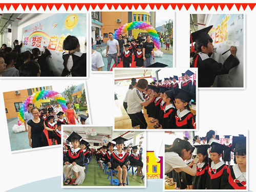 畢業(yè)典禮包括走紅地毯、跨成長門、撥穗正冠、親點朱砂、書寫‘人’生”等活動。吳曉燕園長向即將畢業(yè)的孩子們表達了美好的祝愿和希望,家長代表訴說了孩子成長的喜悅和對老師的感謝,幼兒代表也表達了三年來對幼兒園的依依惜別之情和對老師的愛,畢業(yè)典禮在孩子們的《畢業(yè)歌》中圓滿結束,老師和孩子們情不自禁的流下了惜別的眼淚。