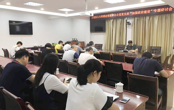 9月29日,三元區人大常委會黨組和辦公室黨支部組織機關在職黨員干部召開“不忘初心,牢記使命”主題教育第三次學習研討會。