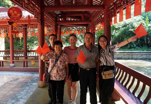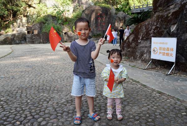 我和國旗同框 慶祝中華人民共和國成立70周年,國慶長假期間,三元國家森林公園格氏栲景區通過開展與祖國同框(發放小紅旗、紅氣球和臉貼)、森林學堂(以自然為配件作畫、探索特色建筑之奇、圍棋康養杯交流賽、親子栲林探秘尋寶等)、森林藝術節(瑜伽、竹笛、古箏、小提琴、廣場文化活動等)、森林集市(土特產品購物體驗)等豐富多彩的主題活動,與所有游客一起歡度國慶!