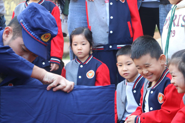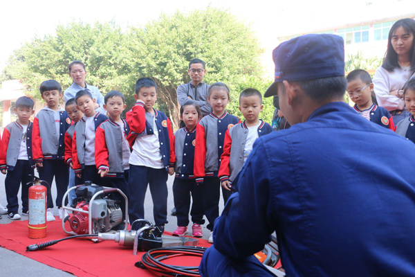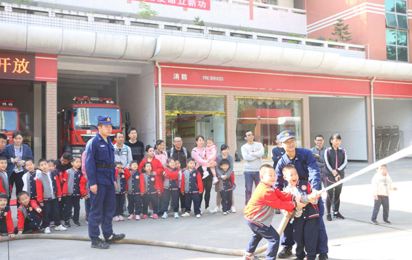 活動中,消防救援站指戰員結合小朋友們的生理、心理特點開展消防器材展示、消防安全知識講解等知識性、趣味性融于一體的活動,寓教于樂,使小朋友們受益非淺。大隊指戰員以生動活潑、簡單易懂的語言,對火災的危害、火災的撲救、如何報警、家庭用火用電應注意的事項、火場逃生的技巧和逃生注意事項等消防安全知識進行了講解,并指導老師和家長們親身體驗了滅火器的操作使用。在參觀過程中,小朋友們還試穿了滅火防護服、搶險救援服等,親身體驗了消防員工作時的狀態,當了一回“小小消防員”。