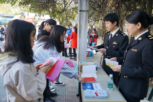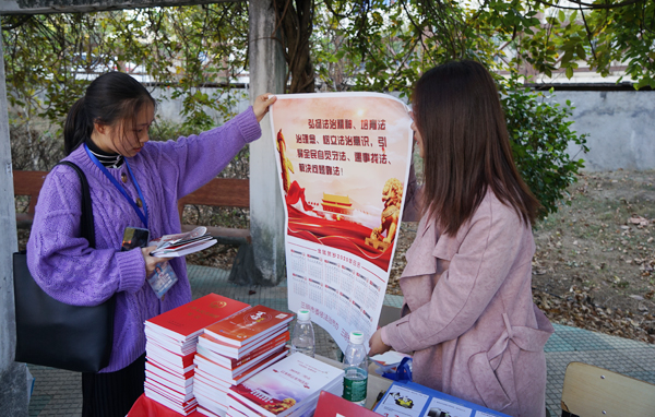 在此次宣傳活動(dòng)中,工作人員充分利用此次憲法宣傳契機(jī),通過組織在校師生學(xué)習(xí)憲法知識(shí)并觀看展板、懸掛橫幅、發(fā)放宣傳資料、現(xiàn)場(chǎng)解答師生問題等形式,為在校師生上了一堂生動(dòng)形象的憲法教育課。