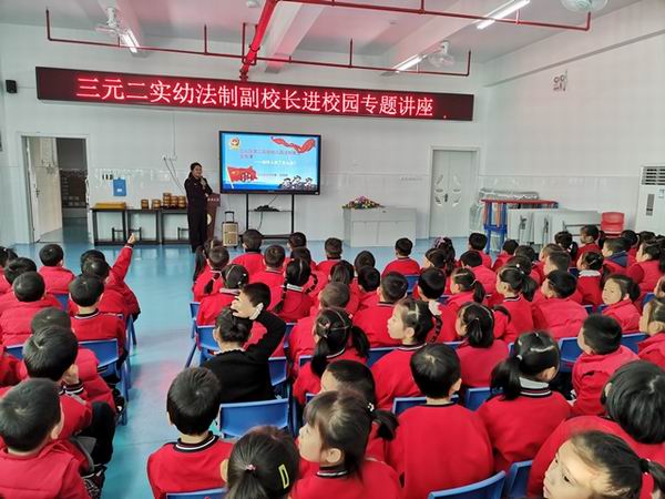 三元區(qū)第二實驗幼兒園邀請綜治副校長白沙派出所警官巫曉姍,為大班幼兒開展“文明守法自我保護”的專題講座。講座中,巫警官將抽象的法律常識通過幼兒喜聞樂見的看圖片、繪本故事、情景模擬、互動問答等多種形式,切實加強幼兒的法治啟蒙宣傳教育。讓幼兒了解日常行為規(guī)范和相關的法律常識,告誡幼兒做一個文明的守法者,教育幼兒如何保護好自己。