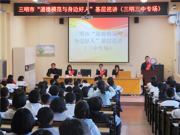近日,三明市“道德模范與身邊好人”巡講活動在三明一中總校三明三中分校開展,150余名師生參加了活動。