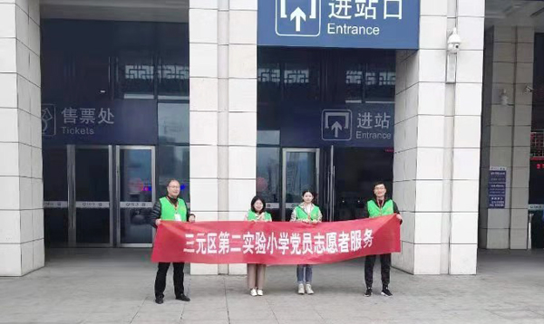 春運期間,三元區第二實驗小學黨支部以“黨帶團”的形式,組織黨員、團員青年教師志愿者赴動車三明站開展志愿服務活動。