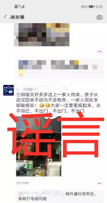 2月3日,三明市公安局三元分局在工作中發(fā)現(xiàn),網(wǎng)友陳某在微信朋友圈發(fā)布“三明城關(guān)好多多邊上一家人傳染”的不實(shí)疫情信息。該信息發(fā)布后,引發(fā)不明真相群眾評論并轉(zhuǎn)發(fā),造成不良影響。