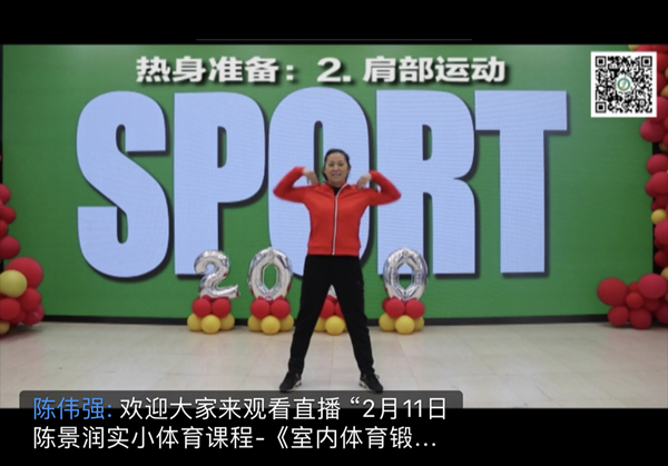 “孩子還小,學(xué)校關(guān)于防疫的課程,不僅僅是科普,也讓他懂得愛和責(zé)任。”李子謙的爸爸告訴記者通過這幾天的課程,孩子在老師的引導(dǎo)下每天會主動關(guān)注新聞,了解防疫知識,還創(chuàng)作了與疫情防控相關(guān)小作品,向防疫一線的工作人員致敬。 上午10:30,五年級4班的陳俊赫通過電腦跟著視頻中老師開始了鍛煉。熱身運動、核心力量、腿部力量、手臂力量、平衡練習(xí)……他的爸爸媽媽也一同加入了鍛煉的隊伍。“之前老擔(dān)心他作息不規(guī)律,在家沒運動。現(xiàn)在學(xué)校開展了線上教學(xué),孩子跟在學(xué)校一樣,每天早睡早起上課,身體也得到了鍛煉,真的非常好。”陳俊赫的爸爸提起學(xué)校的云課堂不由得連連稱贊。
