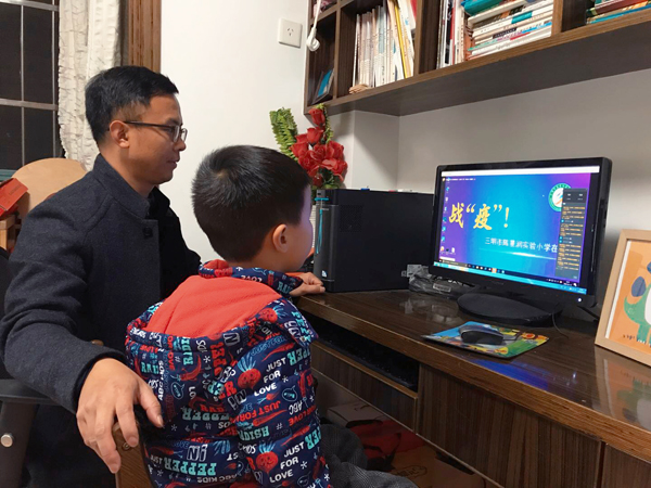 2月13日,三明市陳景潤實驗小學(xué)二年級6班的李子謙在爸爸的陪伴下在電腦前認真地聽著課。屏幕另外一端,是他的語文老師鄧麗娟。 上午8:30,語文老師們進入釘釘群,開始網(wǎng)絡(luò)“云教學(xué)”。主要對已學(xué)知識進行鞏固,還針對疫情防治開創(chuàng)特色教育專題課,在推進網(wǎng)絡(luò)微課的同時,每日進行線上輔導(dǎo)。今天鄧麗娟留給同學(xué)們的作業(yè)是將防疫小課堂后的感受制作成繪本。