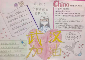 三是開展“新肺炎防護我宣傳”活動。指導學生通過手抄報、繪畫、征文、抖音視頻、書信等形式宣傳新型冠狀病毒防護的知識,宣傳抗擊疫情的先進事跡,表達對奮戰在戰“疫”一線的醫務工作者的崇高敬意和戰勝疫情的必勝信念。