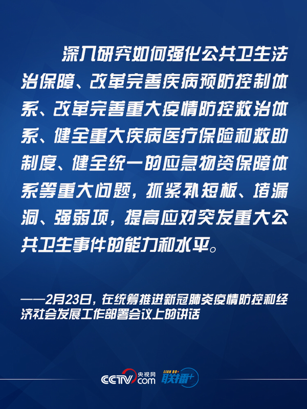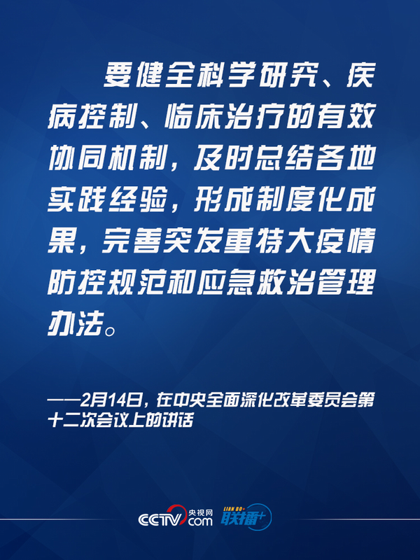“發展環境越是嚴峻復雜,越要堅定不移深化改革,健全各方面制度,完善治理體系,促進制度建設和治理效能更好轉化融合,善于運用制度優勢應對風險挑戰沖擊。” 4月27日,習近平總書記在中央全面深化改革委員會第十三次會議上,深刻總結了黨的領導和我國制度優勢的根本作用,提出健全各方面制度、完善治理體系的明確要求。 小智治事,大智治制。這次新冠肺炎疫情防控,對我國治理體系和治理能力是一次大考。戰“疫”以來,習近平既立足當前,又謀劃長遠,部署疫情防控同時,多次在發表重要講話和考察調研時對健全各方面制度,完善治理體系進行部署。央視網《聯播+》欄目特進行梳理,與您一起學習。