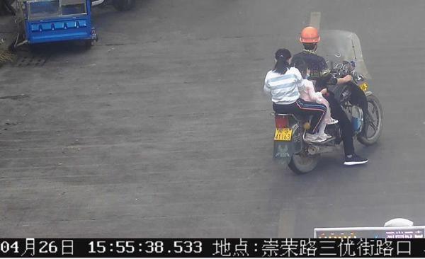 崇榮路三優街路口摩托車存在違法載客,未戴安全帽現象。