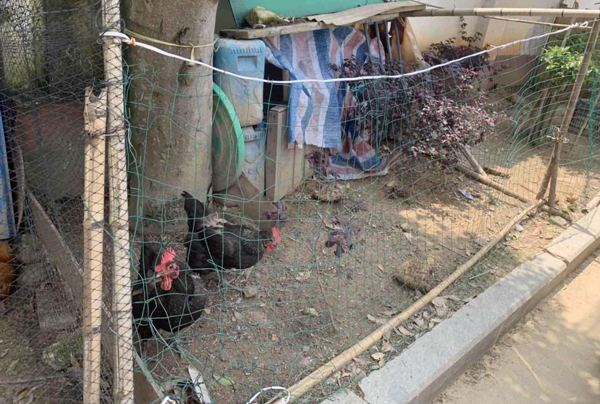 同道農業科技公司外墻邊居民擅自圈地養雞現象。