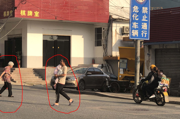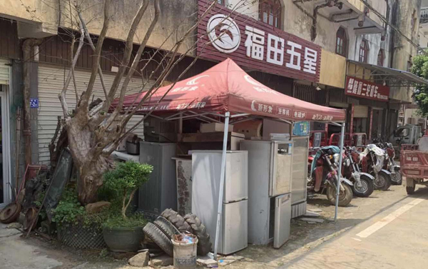 巖前村主街路邊占道經營和物品隨意堆放現象。