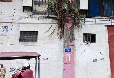 崇榮巷4-16存在墻體長草且有小廣告現象。