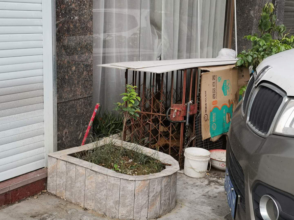 西江悅小區心悅飯店門口存在私搭圈籠養狗現象。