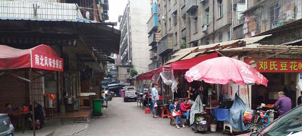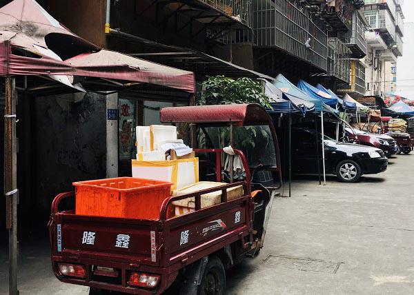 紅杏市場側門(崇榮路一側)存在嚴重占道經營現象。