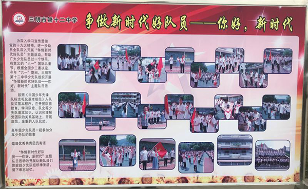 三明市陳景潤實驗小學在開學典禮上開展了扣好人生第一粒扣子“新時代好少年”事跡分享活動,引導同學們追比趕超,努力成為能夠擔當民族復興大任的時代新人;三明三中各班開展“學習新時代好少年先進事跡”主題班隊會,對好少年事跡進行宣傳學習,讓同學們了解好少年們的成長故事,見賢思齊,爭做新時代好少年;三明十二中在開學第一課上,開展“新時代好少年”事跡宣講報告會;三明學院附屬小學三元分校、三明十二中等學校開展“爭做新時代好隊員”展板宣傳活動,號召全體同學積極行動起來,學習先進、爭做先進,拉開了“爭做新時代好少年”的熱潮。