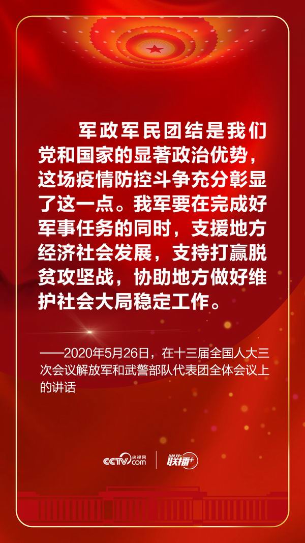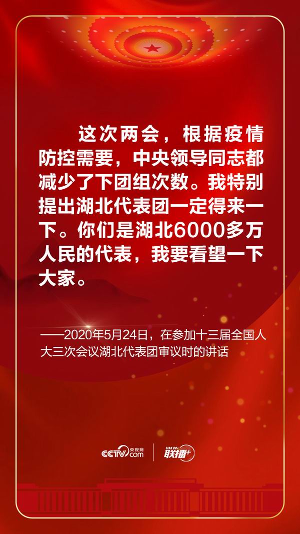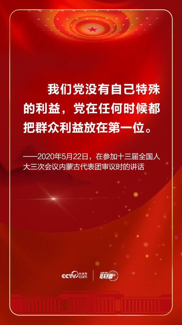 “必須堅持人民至上。” “緊緊依靠人民、不斷造福人民、牢牢植根人民。” “社會主義道路上一個也不能少,全面小康大家一起走!” ………… 今年全國兩會,因疫情防控需要節奏加快。習近平總書記的兩會日程打破往年6次“下團組”的慣例,在今年看望了參加政協會議的經濟界委員,并來到內蒙古、湖北、解放軍和武警部隊3個代表團參加審議。 在這次特殊背景下召開的全國兩會上,習近平一句句堅持“人民至上”“生命至上”的話語暖人心扉、貼近民心。央視網《聯播+》特梳理,與您一起感受總書記的人民情懷。