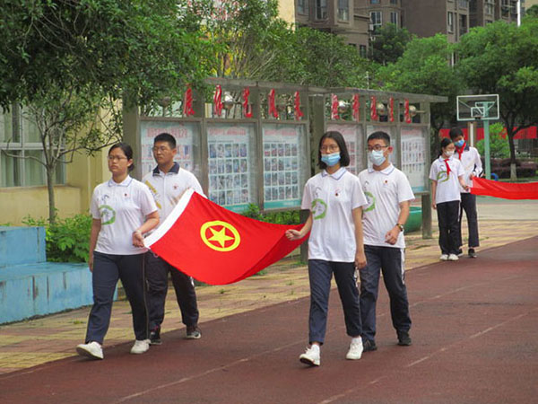 6月1日,三明市第四中學(xué)在田徑場(chǎng)舉行“告別少先隊(duì),邁向共青團(tuán)”主題退隊(duì)入團(tuán)儀式。