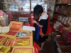 在宣傳過程中,宣傳人員一邊發(fā)放消防宣傳資料,一邊針對“九小場所”的特點講解消防安全注意事項,并結(jié)合全區(qū)各商鋪容易出現(xiàn)的電氣線路不符合規(guī)定、商鋪內(nèi)雜物堆放無序、滅火器未配備或配備不符合規(guī)定等問題,向業(yè)主們進行重點宣傳,提醒業(yè)主要切實加強防火工作,注意用火、用電安全,日常生活及經(jīng)營中要確保疏散通道的暢通等。并用通俗易懂的語言向商戶們耐心講解夏季火災特點、防火滅火常識、發(fā)生火災如何正確報火警、如何撲救初起火災、如何逃生及滅火器的正確操作方法等消防安全知識。