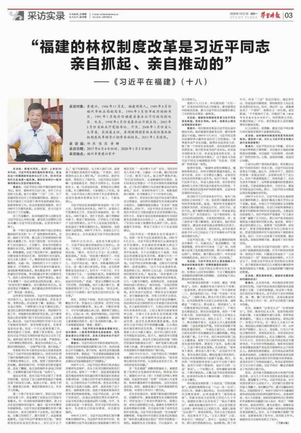 采訪對象:黃建興,1948年11月生,福建閩侯人。1989年8月任福州市林業局副局長,1990年5月任市政府副秘書長,1991年1月起歷任福建省委辦公廳行政處副處長、處長,1998年4月任省委辦公廳副主任,2002年5月任省林業廳黨組書記、廳長,2008年1月任省人大常委、農經委主任,其間借調國家林業局任集體林權制度改革領導小組常務副組長。2011年1月退休。 采訪組:邱然陳思黃珊 采訪日期:2017年6月4日初訪,2020年1月5日核訪 采訪地點:福州市黃建興家中 采訪組:黃建興同志,您好!上世紀90年代初,習近平同志調任福州市委書記,您也在這一時期調到市政府辦公廳工作,90年代末你們又在省委一起共事。請您談談你們一起共事的情況以及您對他的印象。 黃建興:習近平同志1990年調任福州市委書記。那時,福州市有五區八縣,農村工作占到很大比重。他十分重視“三農”工作,為了加強市里對農村工作的協調和推動,提出讓一位農村基層工作過的干部任市政府副秘書長,協助市領導工作。經過市委組織部推薦,我于1990年5月就任此職。從那時起,我與習近平同志有了工作接觸。 在工作接觸中,我深刻感受到人民群眾在習近平同志心中的分量,感受到為民情懷已經深深融入習近平同志的血脈。這里列舉兩個例子。 第一個例子是妥善處理1990年連江縣琯頭鎮官岐村發生的“8·2”惡性群體性事件。當時,福州久旱不雨,鎮上派工作組到官岐村協調分水灌溉工作,有名干部發現一位農民私自擴大農田進水口,大發脾氣,爭執當中把群眾推倒在水田里。事情發生后,圍觀群眾越來越多,群情激憤。這名干部見勢不妙,跑離現場向鎮黨委負責同志匯報,說官岐村農民造反,應馬上派人教訓一下。鎮領導沒有認真細致了解情況,頭腦一熱,當即組織幾十個人把村子圍起來,打罵群眾,沖到村民家中打砸家具,造成的影響極其惡劣。琯頭鎮是僑鄉,海外華僑遍布世界各地,僑民知道這件事之后都很生氣,組織人到市里反映,要求嚴肅查辦。他們手頭掌握了一份記錄現場過程的錄像,表示:“如果市里不能解決,我們就到省里去告。如果省里還不能解決,我們就通過僑界告到中央去!”事態進一步惡化。 這件事發生的時候,習近平同志剛到福州市任職不久。他對這件事很重視,但處變不驚、非常沉穩。經過初步了解,他指出:“群眾是占理的,干部野蠻行為是不能容忍的。”他當機立斷組織調查組進行核實,然后做好安撫工作,再根據實際情況研究處理。這個調查組由公檢法等部門的十多位同志組成,讓我帶隊。臨走前,習近平同志特別叮嚀我下去之后不要搞官官相護,要多聽群眾意見,實事求是依法辦事。經過一個月認真細致地工作,調查組穩住了局面,掌握了真實情況,回來后向習近平同志主持的市委書記辦公會作了匯報。他聽取匯報并看了相關錄像,嚴肅指出:“這件事情處理的宗旨,就是為民伸張正義。對欺壓百姓的官員,一定要嚴懲不貸,絕不姑息。” 市委秘書長林文斌同志向連江縣委縣政府傳達了習近平同志的重要指示。縣里及時處理了毆打侮辱群眾的干部,并安撫了受害者。由于事情處理得公正、合理,得到了官岐村群眾的諒解。調查組離開時,村里的老百姓夾道歡送,還放了鞭炮,連江縣的海外鄉親也口耳相傳,大家都稱道習近平同志是“包青天”。 通過這件事,我對習近平同志留下了非常好的印象,也印證了我之前聽到的他在寧德地區留下的良好口碑。他那么年輕,卻敢于擔當,能夠秉公處事,替老百姓伸張正義,實在令人欽佩。 第二個例子發生在1998年,那時習近平同志在省委工作,我也調到了省委辦公廳直接為他服務。有一次我陪他到福清市調研,晚上8點多返回福州市區途中,遇見一起卡車和摩托車相撞事故。習近平同志看到騎摩托車男子倒在血泊中,要求立即停車下去看看。我們都勸他,交警已經到位了,就不用管了,還是繼續趕路吧。習近平同志嚴肅地對我們說:“倒在那里的如果是你們的親人,你們會不會下去。”他下車察看后,馬上叫人撥打120,接著俯下身握住傷者的手安慰他:“不要怕,我們周圍有這么多人幫忙呢。”10分鐘后,救護車趕到,等傷員上了救護車,習近平同志反復叮囑一定要搶救過來,然后才回到車上。在返城的車上,他一句話也沒有說,看得出來心情很沉重。車上靜悄悄的,大家都陷入了沉思。我想,習近平同志之所以堅持下車去看望傷者,是因為他確實把群眾當作了親人,十指連著心。 習近平同志還真誠愛護著身邊每一位工作人員,我對此也深有體會。1987年,省委辦公廳要調我去工作,但是因為家庭原因,我一直沒去。1988年夏天,我忙于抗洪,疏于照顧家中孩子,耽誤了醫治時間,17歲的兒子在生病17天后突然離世。這個令人無法接受的現實,給我造成了非常沉重的打擊。那段時間,我的精神幾近恍惚。1990年下半年,省委辦公廳又動議調我去,這次是通過習近平同志做我的工作。 1990年12月26日,是我至今難忘的日子,習近平同志請我到他的辦公室談心。我說:“習書記,我不想去省里工作了。”習近平同志說:“建興,你為什么不去?怎么想的,跟我說說。”我說:“我連孩子都沒有了,對我來說,一切都沒什么意思了。”沉默了一小會兒,習近平同志說:“建興,你所遇到的這種打擊,是一般人難以承受的。但是,過去的事情誰也無法改變了。你作為一個男子漢,千萬不要消沉下去,一定要振作起來。你調到省里面,工作忙