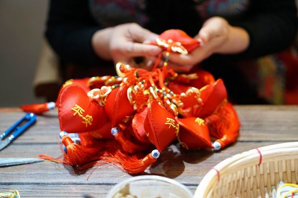 “這叫‘金絲寶葫蘆’,寓意招財進寶。這個小蘋果,掛在車上寓意平平安安……” 83歲的王秀英老人,一提起自己縫制的香包新產品,馬上打開了話匣子?!拔疫€要再改進,慢慢開發一些新樣式。不論誰來,都要讓人家高興地來,滿意地回去。” 雖已至耄耋之年,王秀英一直心心念念著設計一些香包新花樣。一副老花鏡、幾軸彩絲線,占據了她生活的大部分空余時間。
