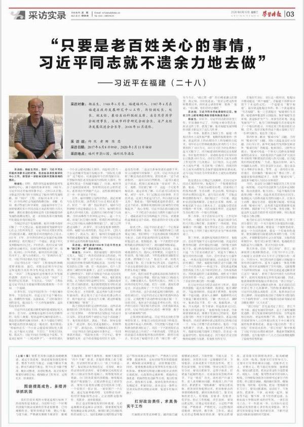 采訪對象:楊益生,1948年6月生,福建福州人。1987年4月在福建省政府發展研究中心工作,歷任副處長、處長、副主任,兼任省社科聯副主席、省自然資源學會副理事長、省城市科學研究會副會長、省產業經濟發展促進會會長等。2008年10月退休。 采訪組:邱然黃珊陳思 采訪日期:2017年6月8日初訪,2020年1月11日核訪 采訪地點:福州市芳沁園,福州悅華酒店 采訪組:楊益生同志,您好!習近平同志任福州市委書記的時候,您在省政府發展研究中心工作,請您講一講他制定福州發展戰略的情況。 楊益生:好的。我的單位是福建省政府發展研究中心,屬于政府的參謀單位。1992年,習近平同志任福州市委書記。之所以認識他,主要是因為他當時主持制定了福州市的發展戰略,即“3820”工程,對福州未來3年、8年、20年經濟社會發展的戰略目標、步驟、布局、重點等進行科學謀劃。這是福州市為了全面貫徹落實鄧小平同志南方談話和黨的十四大精神,落實省委省政府制定的《加快福建經濟發展的戰略設想》,進一步加快改革開放和現代化建設步伐而制定的。 為制定好這個發展戰略,福州市委市政府召集了一個大型會議,福建省政府發展研究中心在會上有兩次發言。習近平同志對我們的發言比較感興趣,就把我們叫到他的辦公室去,問3年、8年、20年的經濟社會發展目標具體該如何定。我們提出了一個建議,就是3年大變樣跟福州自己比;8年的話,我們應該與周邊的省會城市比,比如與離得較近的廣州、南昌、杭州比;20年的話,福州在經濟總量、人均水平上,要與臺灣相比,與“亞洲四小龍”比。習近平同志很認可這個建議。 習近平同志對“3820”工程指標的準確度要求很高。最后,實踐也證明當年目標定得是相當具有科學性和遠見性的。可以說,“3820”工程是福州這座城市20年發展的藍圖。直到今天,福州人民對“3820”工程仍然記憶猶新。不可否認,“3820”工程也是習近平同志主政福州期間很重要的一個開局、一個基礎。 20多年前,習近平同志作為一個地方城市領導,不急功近利,而是立足于這個城市長遠、戰略性的發展,從善如流,廣泛聽取各方面的意見,提出這么一個大的發展框架,是具有遠見卓識的。 習近平同志還提出要把福州建成國際化大都市。在當時,這種提法是相當具有前瞻性的,沒有人敢提,特別是研究城市建設的人。我也曾長期研究城市經濟,私下與建設廳研究城市建設的同事談起這一提法時,他們都說:“將福州這么一個小省會建設成國際化大都市,這個提法太冒進、不可行。”但現在回頭想,我認為:習近平同志當時提這個設想,不是說讓福州“一口吃成胖子”,一步到位就從一個小省會建成國際大都市,而是將它作為一個長遠的城市發展目標提出來。“國際化大都市”這個提法,應該是福州今后的發展方向。盡管福州現在還沒發展成為國際化大都市,但是離實現這一目標越來越近了。比如,福州舉辦了金磚國家政黨、智庫和民間社會組織論壇,還將承辦世界遺產大會,這些都表明福州正一步一步走向這個目標。 另外,福州要想立足兩岸的話,就必須要與臺北作比較,雖然現在與臺北相比還差一點,但在“一帶一路”倡議帶動下,福州今后的影響力肯定要超過臺北。因為,福州的背后是偌大的中國大陸,這就好比當初的廈門與高雄,當時高雄作為世界航運中心,是一個大港,而廈門比它要小得多,但現在兩岸的航運中心已經開始從高雄轉移到廈門了,廈門已然超過高雄了。20多年,可以改變很多事情的。同樣,福建與臺灣的差距,經過20年,已經大大縮小了。我認為,廈門、福州乃至福建這些年的快速穩健發展,都得益于當年習近平同志非常有遠見的戰略發展規劃。 采訪組:請您講講1994年習近平同志支持“閩江第一漂”活動的情況。 楊益生:1994年,我們福建有一批年輕的文化人,發起了一次具有創新意義的活動,叫做“閩江第一漂”。這個活動,一開始完全是民間組織的體育探險和漂流活動。當時有個很有名的長江第一漂,在一次活動中,有個人在漂到三峽的時候遇難了,這在全國都很震驚。在這種情況下,組織方覺得這個活動太民間化了不行,沒有強有力的保障。所以,他們就找到我,認為我們單位是研究單位,又跟省政府有工作方面的聯系,他們就想把我們單位拉進來。拉進來之后,因為我當時是省政府發展研究中心處長、主任助理,是這些參與者當中職位最高的,就讓我當了這個活動組委會的主任。我開始對這一活動也不太懂,就這樣被他們稀里糊涂“綁架”了。 我之前沒有組織過這樣的活動,這些活動跟我們的工作性質也不同,我心里沒數,就請示了有關領導。一些領導同志覺得這個活動可以支持,甚至還有兩個副省長為這個活動題了字。他們找到我時,就說:“你看,領導也很支持。”就這樣,我心里還是很擔心。但既然上了“套”,就沒辦法,只好硬著頭皮參加了。 習近平同志當時是福州市委書記。一位同事就對我說:“你趕快去找一下習書記,要爭取他的支持。這個活動要是沒有官方支持,一是沒有經費,二是這么多參加者沿途漂下來,安全問題得不到保障。”后來,習近平同志詳細了解這次活動的情況,就給我講:“這個活動很好,一是可以向自然挑戰,二是可以通過這個活動,把閩江流域這條‘母親河’的人文、地理、歷史都了解一下。這是一個文化考察活動,通過系統了解,以后還可以拍成電