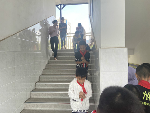 聽到逃生警報響起,全體教職工迅速到崗,學生們在老師的指揮下迅速、有序的按規定的疏散路線向規定的地方撤離。演練結束后,學校還宣傳有關防踩踏的安全知識、撤離要領,并對演練存在的不足之處,并要求立即整改。