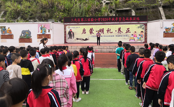 9月25日,三元區第二實驗小學秋季疏散演練拉開帷幕,各班學生在老師的帶領下,無論是在班級還是在樓道間,都能按照規定的路線有序地“逃”出教學樓。