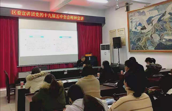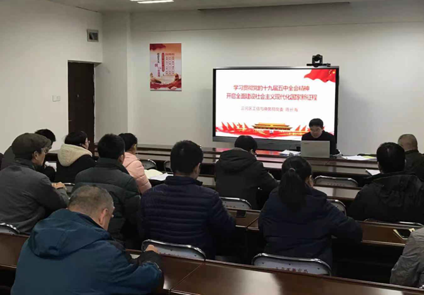 按照區(qū)委統(tǒng)一部署,12月18日,三元區(qū)委黨的十九屆五中全會精神宣講團到工信局、白沙街道和富興堡街道開展宣講,并進行座談交流。 工信局: 黨的十九屆五中全會精神宣講團區(qū)委宣講團成員、區(qū)工信與商務局黨委書記、局長陳長海作專題宣講,到工信與商務局開展宣講,并進行座談交流。工信與商務局全體干部職工和下屬支部書記參加宣講會。