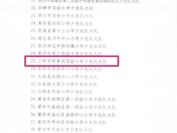 熱烈祝賀三明市陳景潤實驗小學榮獲2020年度福建省少先隊先進集體及個人表彰