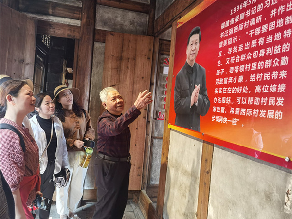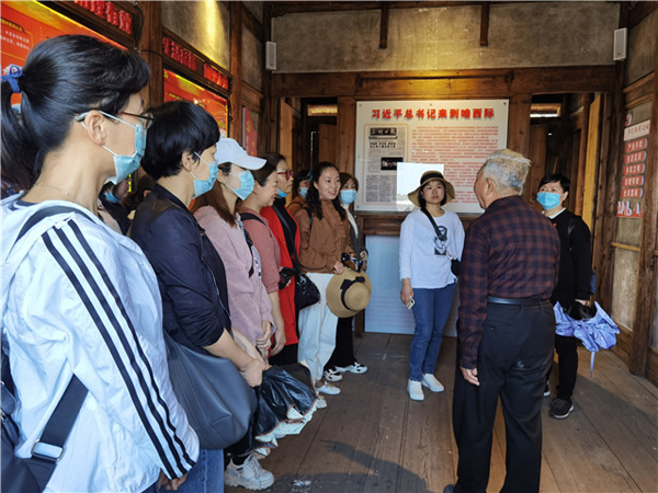 在到達西際村后,一行人在當地解說員的帶領下感受了西際村得天獨厚的戰略地勢;重走了中國工農紅軍當時地下活動的革命路線;參觀了中國工農紅軍西際物質采購站及物質轉運站、紅軍客棧、紅軍井、紅軍伏擊訓練基地等多處舊址;聆聽了余氏家祠在為紅軍軍事斗爭和中央革命根據地建設中的貢獻等紅色故事;瞻仰了舊址中一物一件所展示的革命先烈與故事,在聆聽、朗讀和瞻仰觸摸的過程中,黨員一行人深切緬懷了革命先烈為人民解放拋頭顱、灑熱血的革命精神,追憶了先賢在這一帶留下的革命蹤跡,重溫了紅色路。