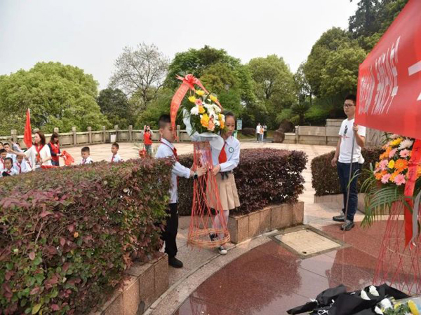 緬懷先烈,寄托哀思。孩子們瞻仰參觀革命英雄紀念碑,向紀念碑敬獻花籃,并以朗誦詩歌的方式緬懷先烈,寄托哀思。