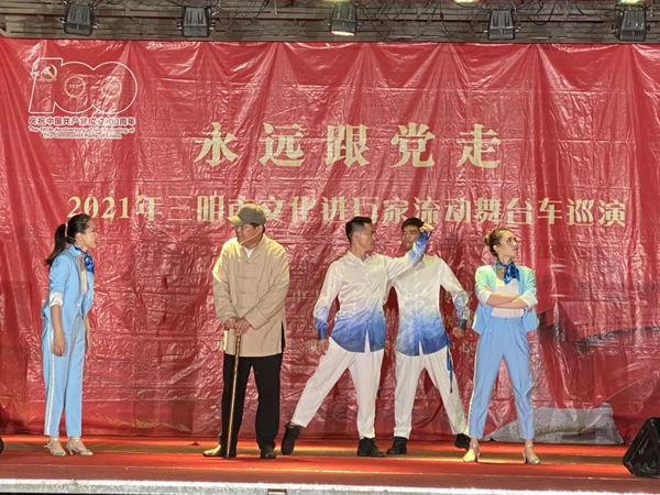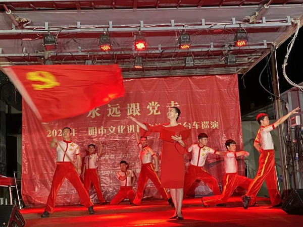 5月21日 市文化進(jìn)萬家流動(dòng)舞臺(tái)車 走進(jìn)三元區(qū)中村鄉(xiāng) 中村鄉(xiāng)干部與村民們齊觀看 現(xiàn)場(chǎng)掌聲不斷 連綿細(xì)雨擋不住大家的熱情 黨群共饗文化大餐 此次活動(dòng)以群眾喜聞樂見的形式 推動(dòng)黨史學(xué)習(xí)教育深入基層