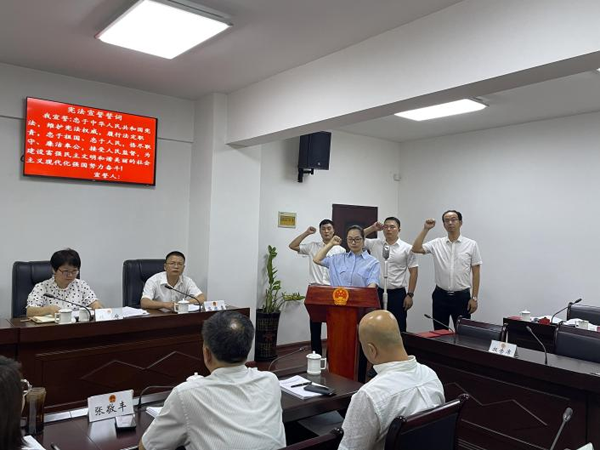 供職發言 會上,三元區人大常委會主任鄧秀忠為被任命人員頒發了任命書,被任命人員進行了憲法宣誓。